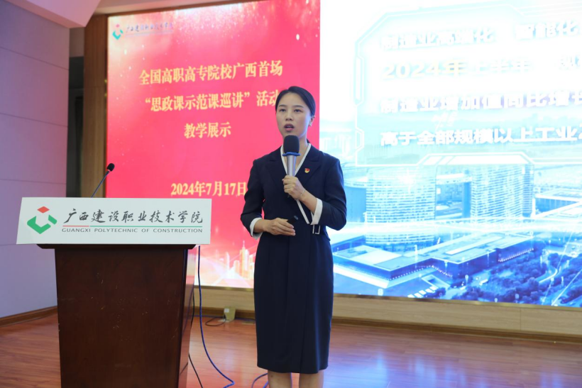 广西建院7月18日讯(文/马克思主义学院 曹桃 图/党委宣传部 韦植巍)7月17日上午,2024年全国高职高专院校“思政课示范课巡讲”广西首场活动在完美(中国)官方4教2楼报告厅开讲。活动由教育部高等学校思想政治理论课教学指导委员会高职高专思想政治理论课分教学指导委员会、广西高职高专院校思政课建设联盟主办,完美(中国)官方马克思主义学院承办。