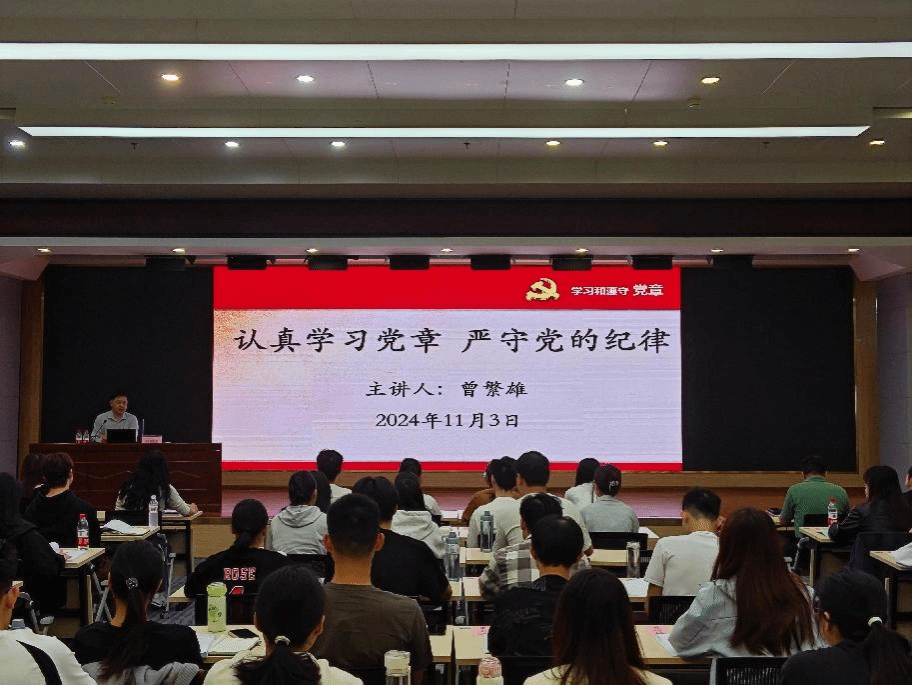 学校党委副书记、党校校长曾繁雄以《认真学习党章 严守党的纪律》为主题进行授课