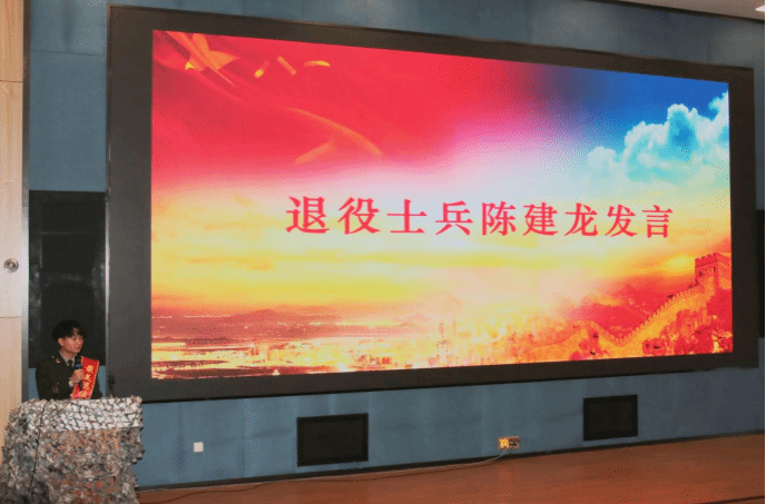 退役士兵、给排水2401班陈建龙在仪式上发言,分享自己入伍当兵的成长故事。陈建龙退役前是一名首都北京的武警战士。他说,自己的爷爷是参加过抗美援朝的老兵,爷爷热血、英勇的故事激励自己从小立志成为一名军人。五年的武警生涯,陈建龙从最初的随性自由、与世无争、个性张扬,到后来“见红旗就扛、见荣誉就争”,令行禁止、绝对服从命令,也经历过短暂的迷茫与不适,是成为一名守护首都的合格武警战士的理想和捍卫维稳精锐之师荣耀的决心,让他克服万难,百炼成钢。