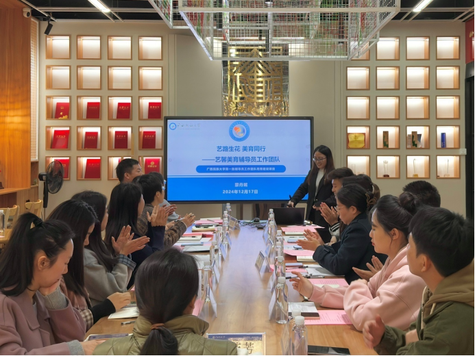交流会上,广西民族大学蒙丹妮老师介绍了艺馨美育辅导员工作团队的建设思路、发展历程、运行模式以及育人成效。她表示,艺馨美育辅导员工作团队致力于促进美育与思政的深度融合,在提升学生素养、能力和健全人格等方面取得了良好的成效,但也在建设过程中遇到一些挑战,希望借此机会双方能够共同探讨、共同进步,推动辅导员工作室的高质量发展。