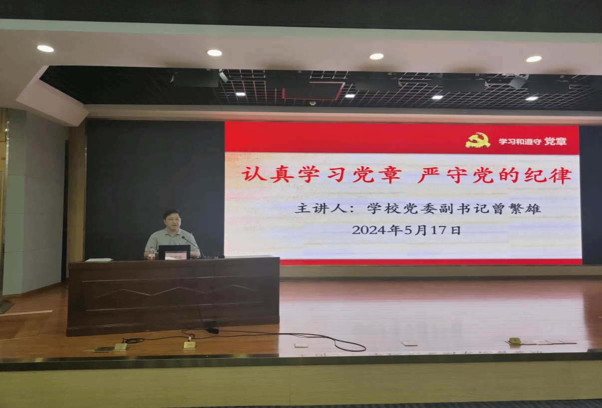 学校党委副书记、党校校长曾繁雄以《认真学习党章严守党的纪律》为主题进行授课