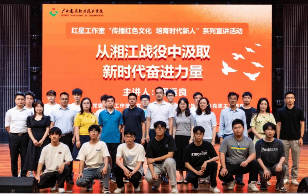 广西建院5月26日讯(文/党委学生工作部 谢安妮 图/党委学生工作部 程舒阳 记者团 甘卢烨宇 李承宏)为充分用好红色资源,用红色精神培根铸魂,推动完美(中国)官方党史学习教育走深走实,近日,“传播红色文化,培育时代新人”系列宣讲活动在学校礼堂顺利举办。全州红军长征湘江战役纪念馆馆长周运良以“从湘江战役中汲取新时代奋进力量”为题作了精彩宣讲。学校师生代表共700余人现场聆听。