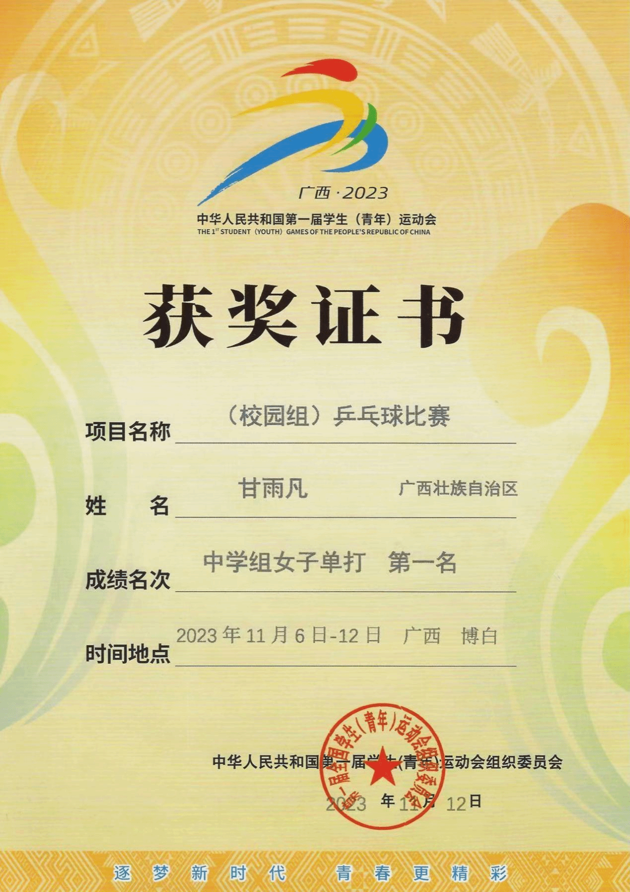 学校秉持“引进专业人才、加强校体合作、学训赛相结合”的理念推进体教融合,畅通优秀退役运动员、教练员进入学校兼任、担任体育教师的渠道。近年,学校引进了乒乓球、羽毛球、啦啦操、篮球等专业运动员作为本校教师开展体育教学和运动队训练等工作并在指导学生参赛方面取得丰硕成果。2023年中华人民共和国第一届全国学生(青年)运动会上,学校从广西乒乓球队引进的钟智明老师担任广西乒乓球中学组教练,指导学生获得中学生女子单打第一名和混合双打第五名的好成绩。