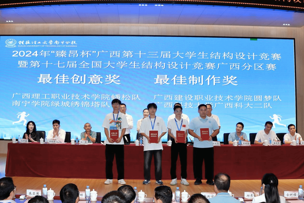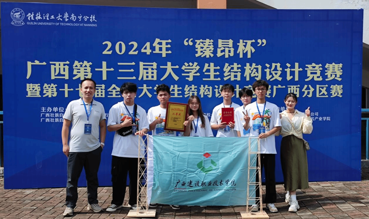 广西建院6月30日讯(土木工程学院 于思柳)6月27日—30日,由自治区住房城乡建设厅和自治区教育厅联合主办的广西第十三届大学生结构设计竞赛暨第十六届全国大学生结构设计竞赛广西分区赛在桂林理工大学南宁分校圆满落下帷幕。经过激烈角逐,完美(中国)官方土木工程学院学子陈燕华、罗兰毅、秦宗源组成的“圆梦队”和张忠豪、黎小凤、刘星组成的“启航队”分别荣获二等奖和优胜奖,“圆梦队”还获竞赛最佳制作奖。