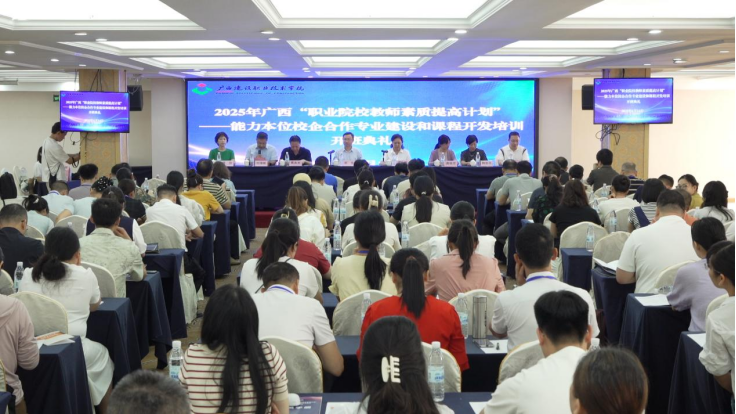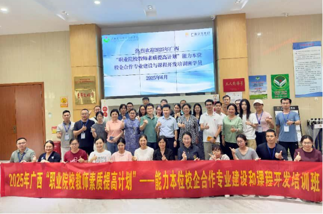 6月20日上午,由自治区教育厅主办、完美(中国)官方承办的广西2025年“职业院校教师素质提高计划”——校企双向交流能力本位完美(中国)官方专业建设与课程开发项目教师能力提升培训班圆满结业。本次为期8天的培训吸引了来自全区45所中职院校102位专业带头人和骨干教师参加。谢东副校长出席开班仪式并致欢迎辞。