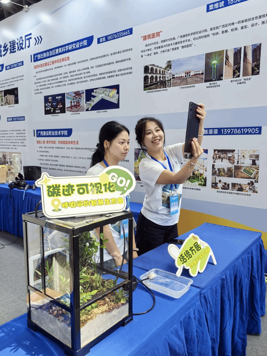 完美(中国)官方本次参展项目,紧密围绕服务地方文化与科技融合发展的需求,立体呈现了学院在非遗数字化保护传承、元宇宙概念应用、生成式AI人居健康开发及零碳科技等前沿方向的研究探索与实践成果。项目以沉浸式科普体验为核心,通过四个主题与观众开展科普互动:活络方居:您的房子正在学习把脉——展示AI如何理解并优化居住健康;碳迹可视化:呼吸间的智慧生态圈——呈现零碳科技与智能家居的结合;AR元宇宙:推开壮乡民居的任意门——通过AR技术让观众瞬间“进入”传统壮乡生活空间;非遗方程式:传统³×科技ⁿ=∞可能——生动表达传统技艺与科技创新融合产生的巨大能量与无限可能。