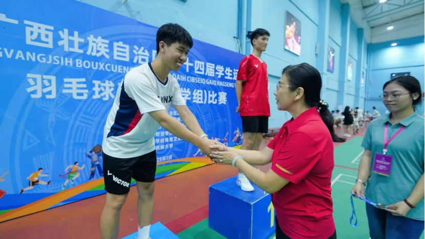 近年来,学校通过三项举措不断深化体教融合:一是创新课程:开设武术、绣球等特色体育课程,将壮乡传统体育纳入学分体系;二是保障师资:引进6名专业退役运动员担任体育教师,强化学生体能素质提升和学生竞赛指导;三是丰富载体:持续举办“系列体育赛事”,年参与学生超2万人次。“这些奖牌背后是每天坚持不懈的训练。”学校人文教育学院院长曾小贵介绍。“贯彻党的教育方针,落实‘五育并举’,多措并举深入推进体教融合,是培养学生优秀品德、提升体能和参赛成绩的基石”。
