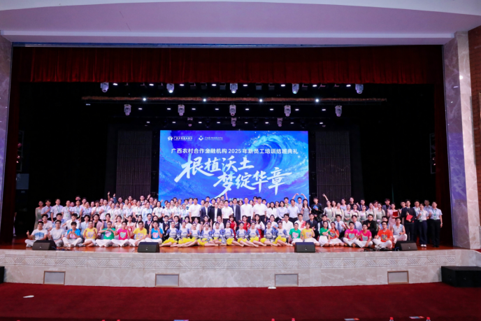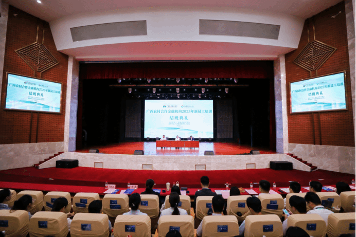 10月21日,广西农村合作金融机构2025年新员工岗前培训结班典礼在学校礼堂举行。广西农商联合银行党委书记、董事长罗军与学校党委书记刘晓红共同出席典礼并发表讲话。广西农商联合银行相关部室及联社负责人、学校教务处相关负责人一同出席活动。活动由学校副校长付春松主持。