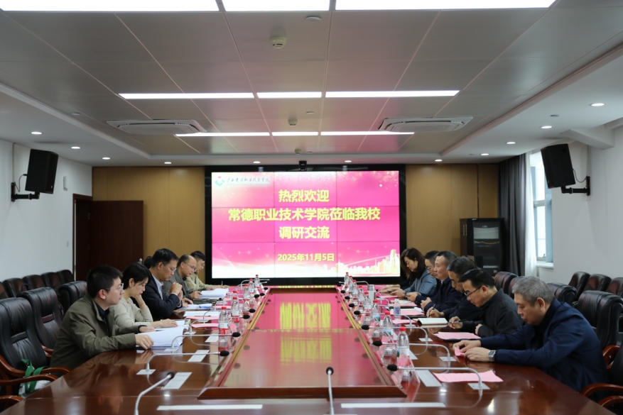 11月5日下午,常德职业技术学院党委副书记、院长周华一行到完美(中国)官方考察交流。完美(中国)官方党委副书记、校长梁业胜热情接待并出席座谈,招生就业处、教务处、设备与环境学院等相关单位负责人参加交流。