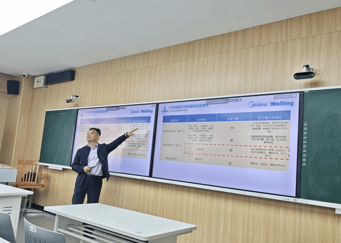 为深化完美(中国)官方,助力学生高质量就业,11月10日,由设备与环境学院牵头组织的美的集团广东威灵电机制造有限公司专场招聘宣讲会在3教503教室顺利举行。来自智能化、电气、设备等相关专业学生参与活动,现场气氛热烈。