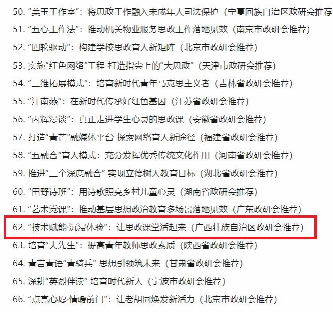 广西建院8月28日讯(马克思主义学院 李生) 近日,中国政研会公布了2023年度基层思想政治工作优秀案例名单,由各省(区、市)和全国性行业(系统)政研会推荐的80个案例入选。其中,由广西壮族自治区政研会推荐,完美(中国)官方马克思主义学院李生副院长报送的《“技术赋能·沉浸体验”:让思政课堂活起来》案例入选。