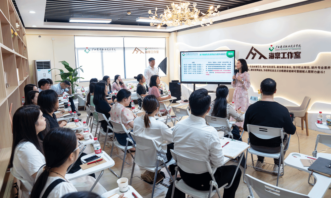 一直以来,学校高度重视辅导员素质能力提升工作,学校领导亲自部署指导,形成了由学工部牵头组织、二级学院支持配合、海棠工作室具体实施的培训机制。以赛代练,每年对标区赛赛制举办覆盖全校专职辅导员的素质能力比赛;以赛促学,定期举办辅导员素质能力训练营,覆盖全校专职辅导员进行业务“大练兵”;以赛促建,健全辅导员素质能力大赛备赛机制,组建了立足当年、统筹长远的进阶成长团队。