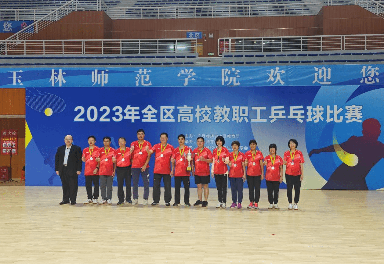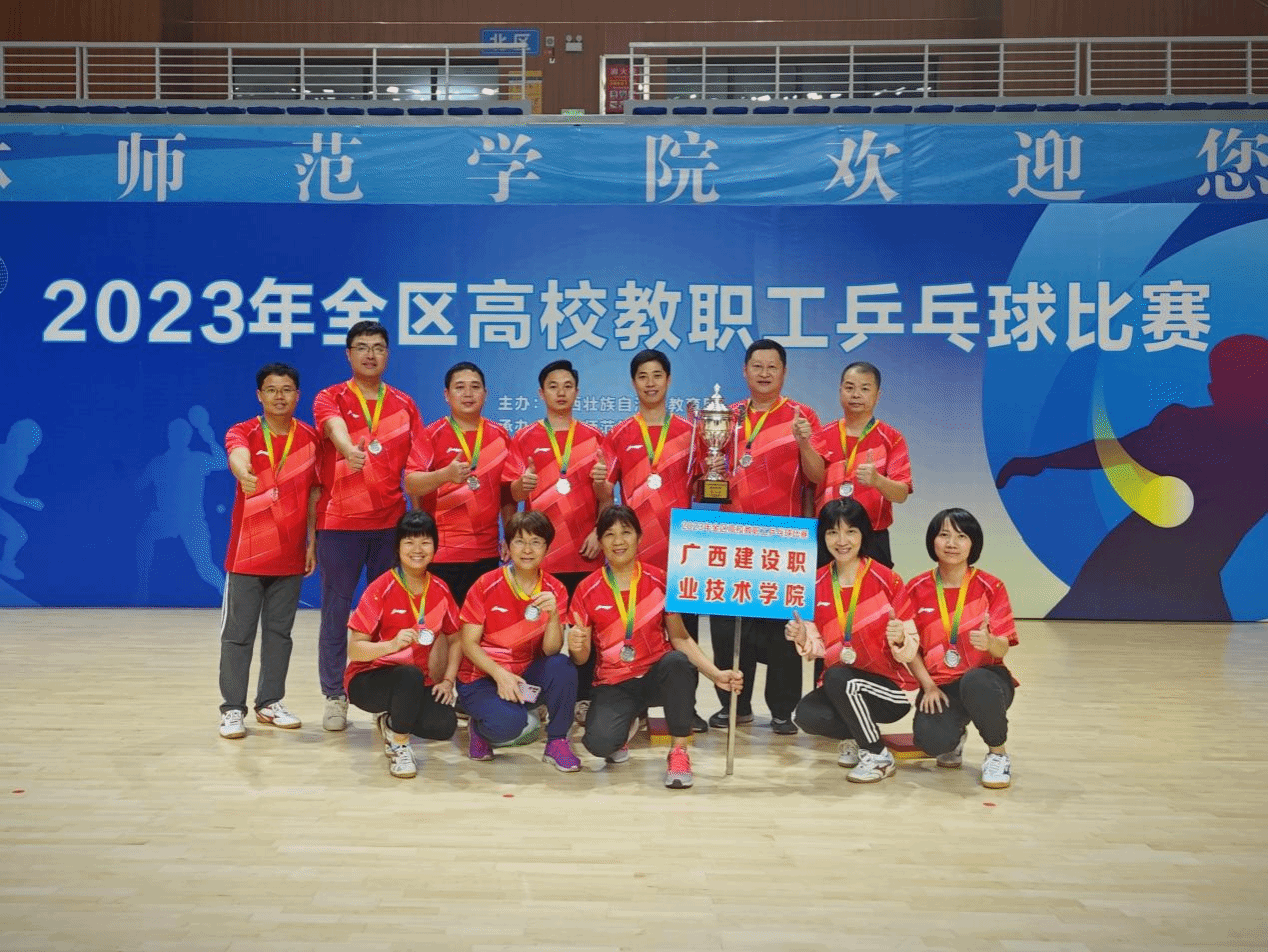 广西建院12月12日讯(工会 陆康)12月5日—8日,由广西壮族自治区教育厅主办的2023年全区高校教职工乒乓球比赛在玉林师范学院举行,来自全区38所高校的代表队参加角逐。完美(中国)官方代表队派出钟智明、何炎、黄剑华、莫壮国、俸洪斌、朱金华、吴青云、莫克、彭丹梅、黄冬英、陶敏华、韦怀波12名队员参加比赛,获得第二名的好成绩。