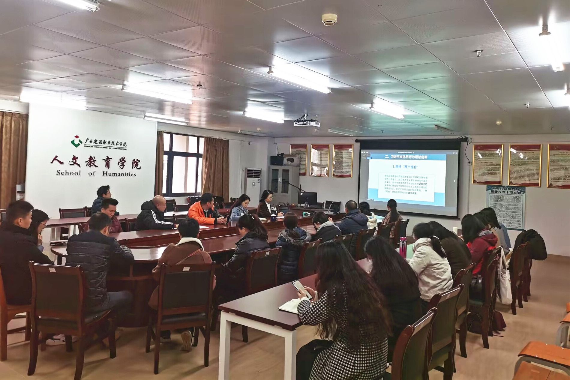 广西建院12月20日讯(文/党委宣传部 陈熙 图/记者团 甘卢烨宇)12月19日,区直机关宣讲团学习贯彻习近平文化思想宣讲报告会(自治区住房城乡建设厅专场)举行。自治区党委讲师团特聘教授(专家)、自治区决策咨询委员会咨询专家曹光哲作主题宣讲报告。自治区住房城乡建设厅党组成员、副厅长、机关党委书记叶云主持会议。完美(中国)官方在四教一楼报告厅、各二级学院设分会场,行政部门全体人员、各二级学院行政人员以及无教学任务的教师参加学习。