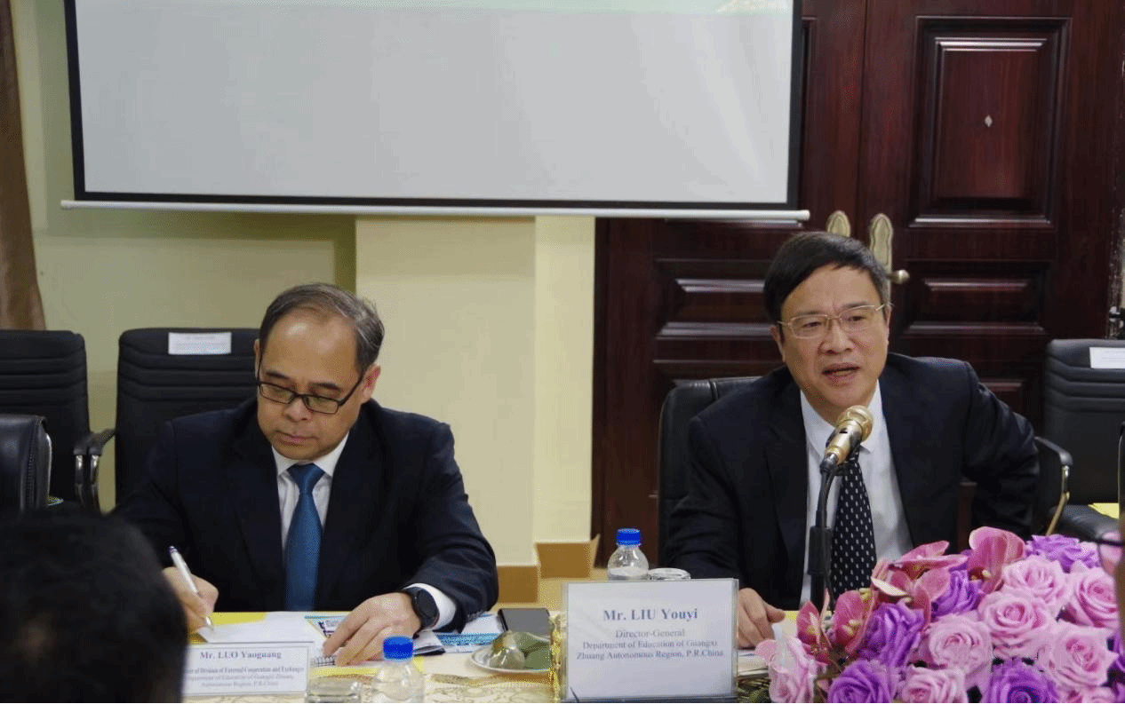 自治区教育厅刘友谊厅长(右一)发表致辞
