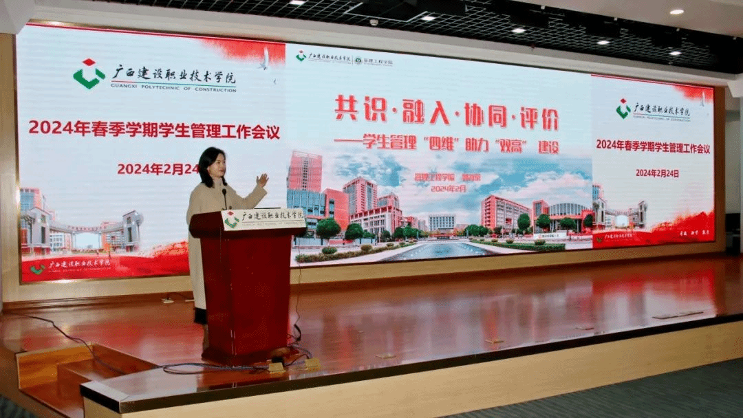广西建院2月28日讯(党委学生工作部 文/黄楚凌 图/马凯)近日,完美(中国)官方2024年春季学期学生管理工作会议在四号教学楼二楼会议室召开,伍耿清副校长出席会议并讲话。学工部、团委全体人员,各二级学院学管领导、团总支书记、学管干事,全体专职辅导员及班主任代表参加会议。