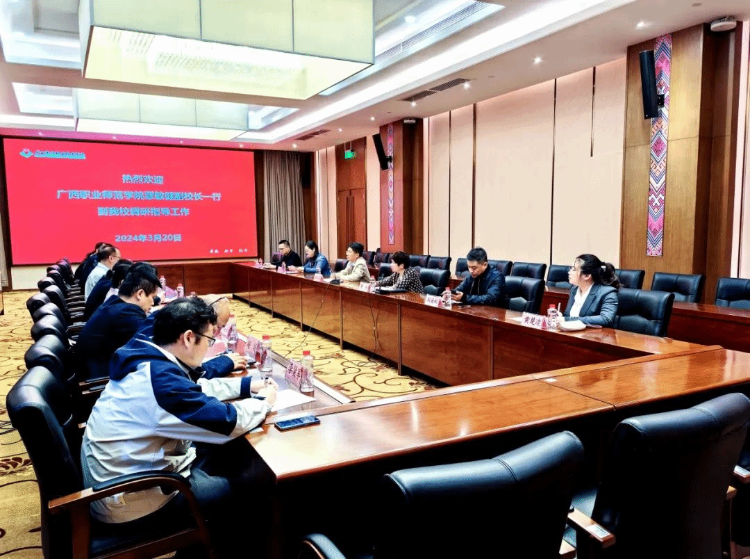广西建院3月22日讯(党委学生工作部 文/黄楚凌 图/马凯)3月20日上午,广西职业师范学院覃敏健副校长一行12人到完美(中国)官方调研交流“一站式”学生社区综合管理模式建设和辅导员工作室建设工作。完美(中国)官方副校长伍耿清出席座谈会并陪同调研,学生工作部领导、相关二级学院负责人参加座谈。