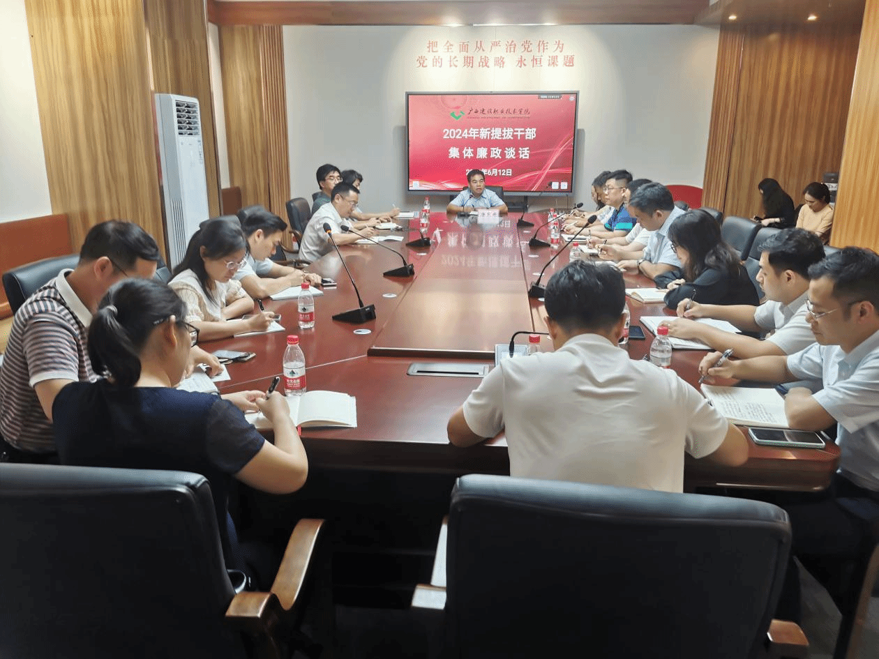 广西建院6月14日讯(纪委办公室 李雪萍)为进一步增强新提拔干部廉洁自律意识,筑牢拒腐防变思想防线,营造风清气正的良好氛围,6月12日,学校在廉洁教育基地开展2024年新提拔干部集体廉政谈话活动。学校党委委员、纪委书记唐东升出席并作主旨谈话。