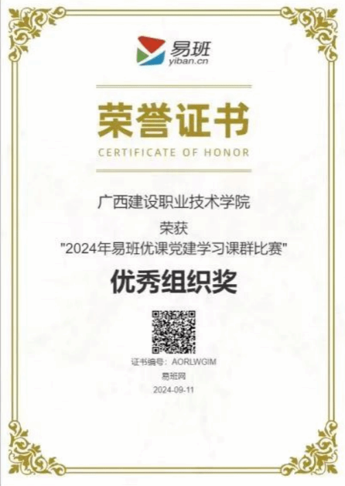 广西建院9月22日讯(党委学生工作部 刘晗蓓)近日,教育部易班发展中心公布了2024年易班优课“新生入学教育活动”、2024年易班优课“党建学习课群比赛”两项大赛评比结果,完美(中国)官方在两项大赛中荣获“优秀组织奖”。这是完美(中国)官方易班今年继获2024年第一届易班优课“求职辅导课程学习大赛”、第一届易班优课“美食图文课大赛”两项大赛的“优秀组织奖”后,再获全国易班优课荣誉。