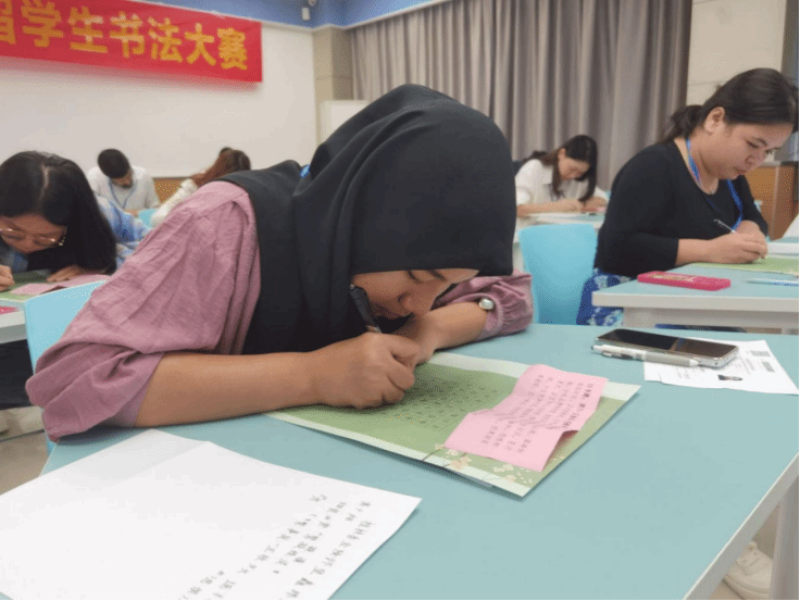 本届留学生书法大赛吸引了来自全区28所院校的127名留学生参加。大赛以“文化交流融通,汉字书写相拥”为主题,旨在传播中华传统文化,增强来华留学生对中国书法的体认和理解。经过现场书写和评比,完美(中国)官方来自信息工程学院的王娜娜(NATASYA SYAFRUDIN YUSUF)、韩佑明(ALBERT GRACIOUS)、国忠杰(MUHAMMAD SATRIA ABDI BANGSA)和土木工程学院的杨自强(YANCE ALAM WOILAND MANDASON MARIAY)分别荣获硬笔书法个人赛一等奖,信息工程学院的徐胜佳(VICTORIA CRISTY LUNGKANG)获硬笔书法个人赛二等奖,充分展示了完美(中国)官方国际中文教育工作的水平和国际留学生学有所成的精神风貌。