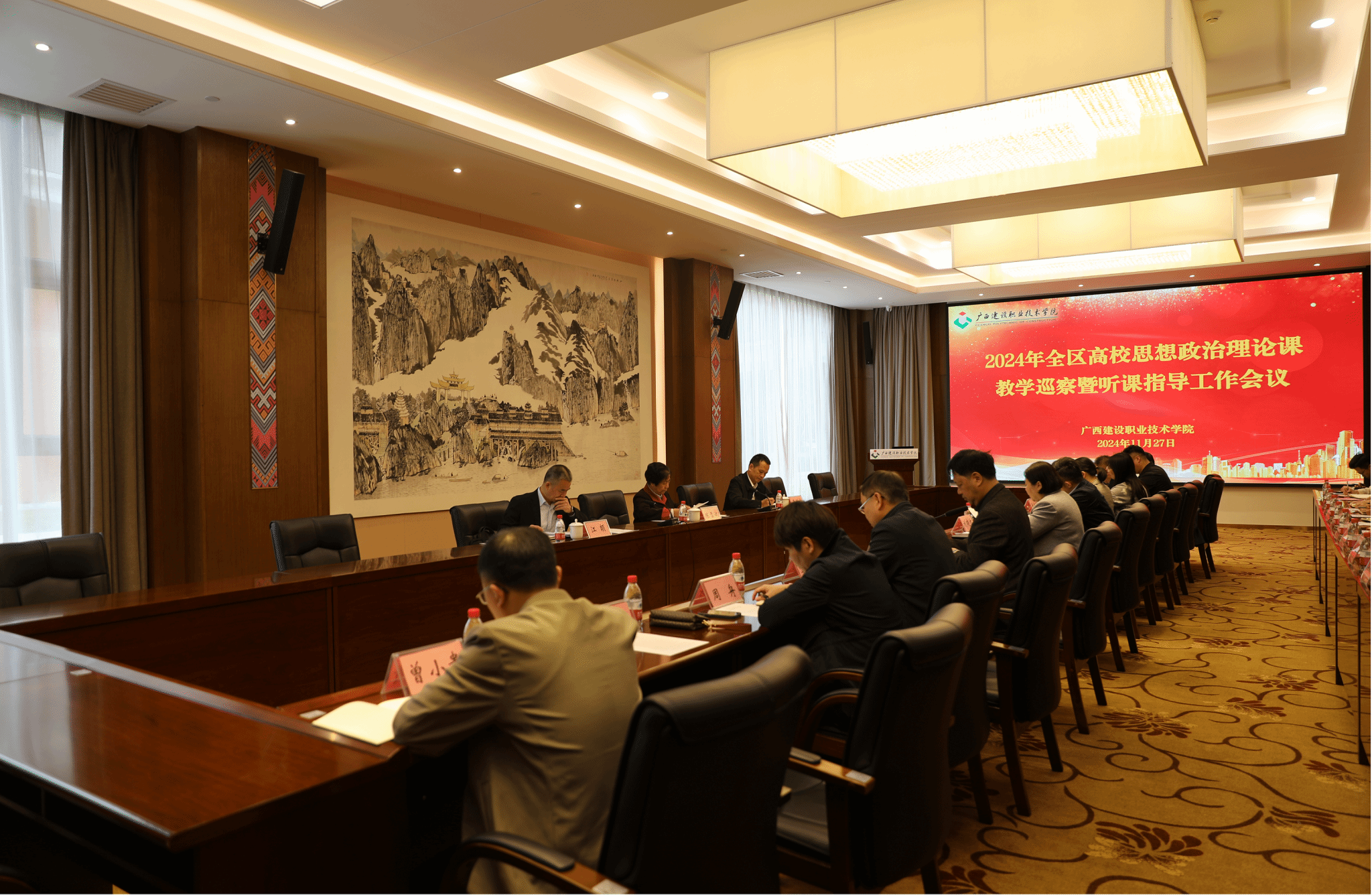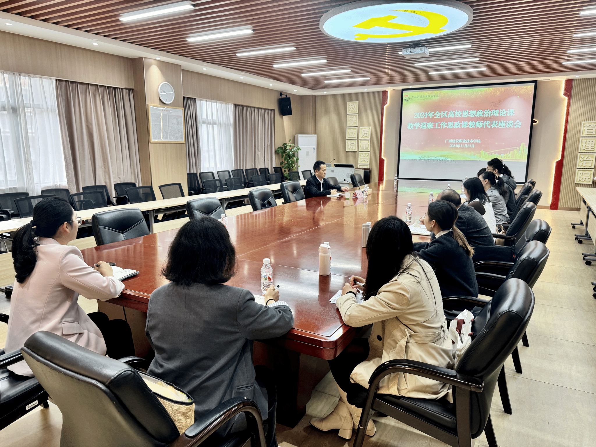 广西建院11月28日讯(文/宋佳雄 图/韦植巍 毕莉)11月27日,以广西中医药大学原副厅级调研员陈雪斌教授为组长,广西机电职业技术学院副校长、马克思主义学院院长黄振宣教授,广西信息职业技术学院马克思主义学院院长江颉教授为组员的全区高校思想政治理论课教学巡察暨听课指导专家组到完美(中国)官方开展思政课巡察指导工作。学校党委书记刘晓红、党委副书记曾繁雄、相关职能部门、各二级学院党政负责人以及马克思主义学院班子成员参加会议。