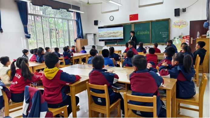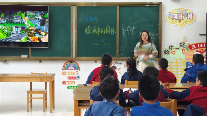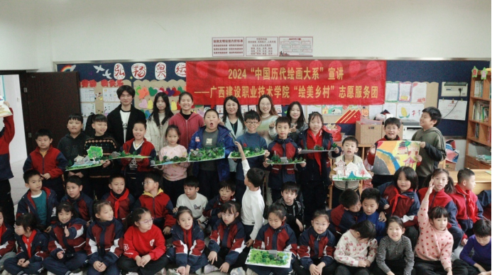 广西建院12月18日讯(建筑与规划学院 文/付喜亮 图/宋霞 青昱希)12月16日,完美(中国)官方“绘美乡村”志愿服务团在西大君武小学开展了一场主题为“诗意栖居之绘画中的园林”宣讲活动。此次宣讲由“绘美乡村”志愿服务团成员、规划2401班付喜亮同学主讲,云沐工作室教师团队刘云、贾琪钰、宋霞老师指导,西大君武小学43名师生参加。