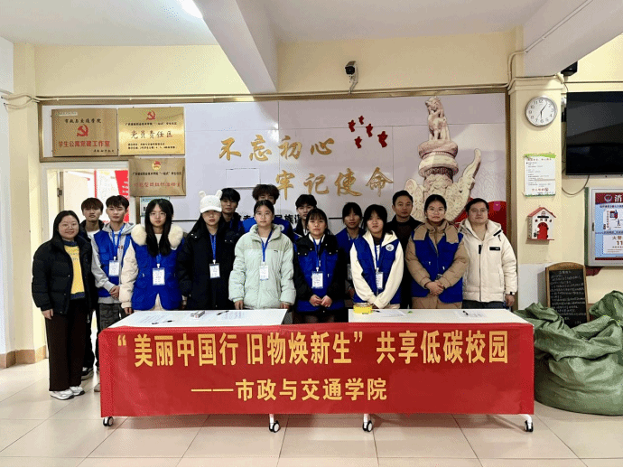 广西建院1月13日讯(市政与交通学院 文/何炎 图/马明雄 吴雄攀)1月9日,市政与交通学院在学生公寓党建工作室开展以“美丽中国行 旧物焕新生”为主题的闲置物品捐赠活动,倡导广大青年低碳生活,为建设美丽中国贡献青春力量。