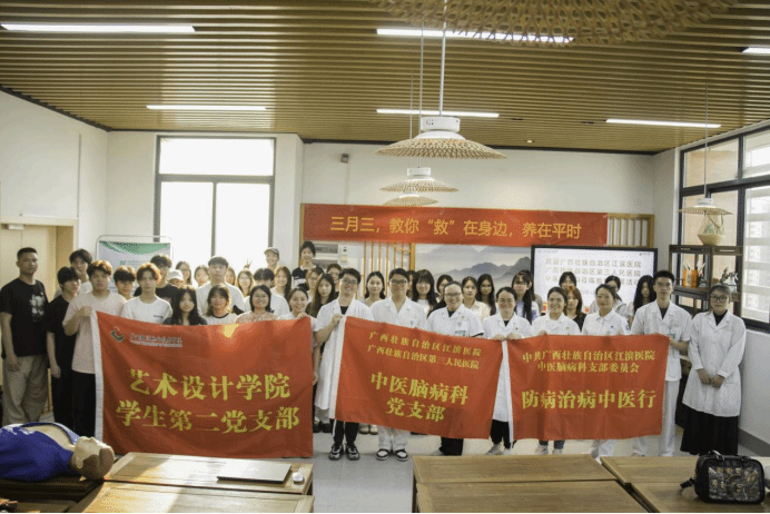 广西建院3月28日讯(文/艺术设计学院 覃芳芳 图/黄海文)为弘扬中华优秀传统文化,普及急救知识与中医养生技能,3月28日,艺术设计学院邀请自治区江滨医院(自治区第三人民医院)中医脑病科医护人员到完美(中国)官方开展“广西三月三,教你‘救’在身边,养在平时”主题活动。该学院学生第二党支部全体师生参与活动,共同体验中医魅力,学习急救技能。