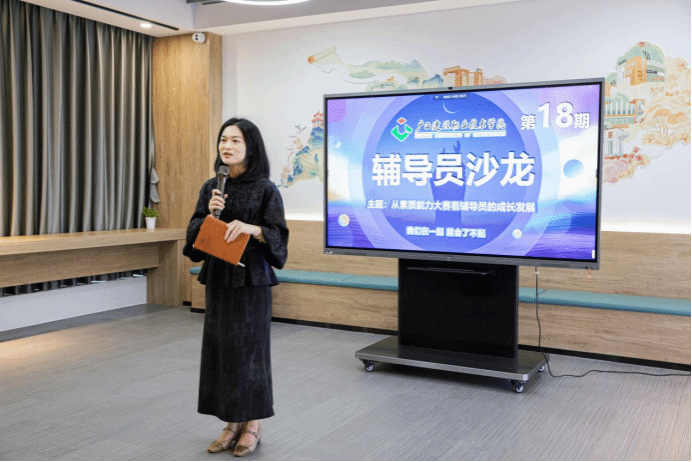 郭海棠老师代表与会同志分享沙龙学习心得。她借用“好房子”的四个方面标准对吴老师的专题授课表达了高度赞誉,并号召与会辅导员们向榜样学习,深耕辅导员岗位,以更加昂扬的斗志投身到育人事业中,为学校高质量发展贡献青春力量。