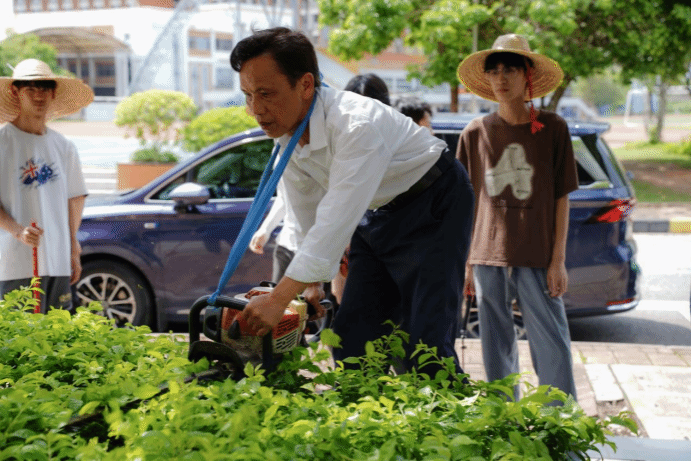 广西建院5月27日讯(后勤管理处 唐尚芳)自1993年到校工作以来,袁江春师傅始终与“校园环境”打着交道,以匠心守护着校园里的一草一木,用岁月勾勒出四季芳华。从秀灵路校区到相思湖校区,浇灌、施肥、修剪、除病虫害,每一项工作都做得细致入微,将对校园的热爱化作点滴行动。