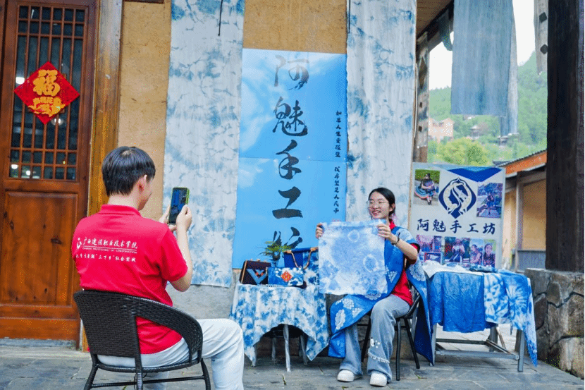 从文化认同到产业赋能,广西建院学子用专业知识和青春智慧,在蓝白扎染间绘就了民族团结与乡村振兴的美丽画卷,展现了新时代青年的责任担当。