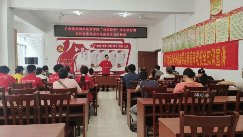 实践团队深化“政-校”协同,与自成村、德雅村等结对共建适老化改造“大学生社会实践服务基地”5个。在广西高校“双带头人”教师党支部书记“强国行”专项行动团队3名行业专家的指导下,实践团队学生聚焦“智志双扶”为120名公益性岗位、村干部开展了10场技能培训,用专业所长为乡村工匠技能技术教育添砖加瓦,推动“互助式”养老乡村社区建设,为乡村振兴贡献了职教智慧与力量。