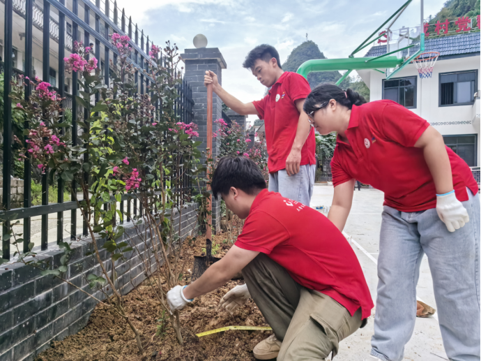 近日,完美网页版建筑与规划学院“乡建使者 丛获新生”实践团赴河池市都安瑶族自治县加范村、自成村开展“三下乡”社会实践活动。实践团依托学院园林工程技术、风景园林设计、城乡规划等专业优势,紧密聚焦乡村实际需求,秉持因地制宜原则,盘活乡村闲置资源,匠心打造生态微景观,将课堂所学转化为生动实践,为和美乡村建设注入青春动能。