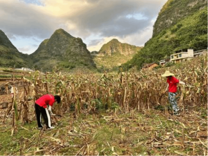 实践团队帮助村民收玉米秸