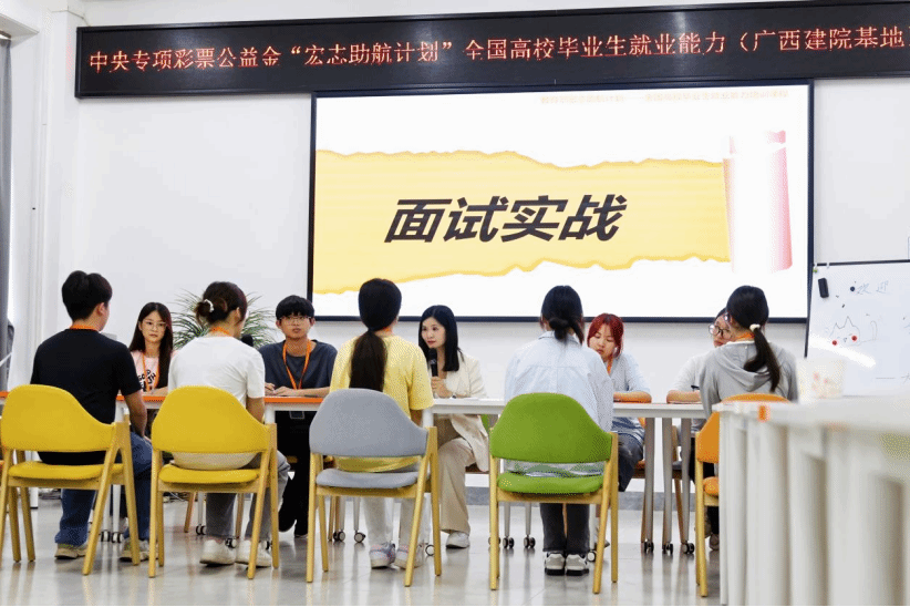 作为国家级“宏志助航计划”培训基地,五年来,广西建院基地累计为区内12所高校4095名毕业生开展51班次就业能力集中培训,为重点群体毕业生就业赋能添力。经过五年实践,基地成功打造了系统化的“意识唤醒—技能夯实—法律强化—服务保障”职业成长与支持体系,形成了可复制、可推广的“广西建院基地”式重点群体精准就业帮扶模式。