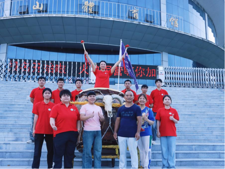 在马山县体育馆广场,10面会鼓列阵,蓝庆阳老师以三声沉稳鼓点开启展演。实践团师生接力击鼓,传统技法与青春创意交融,最终汇聚成震撼人心的合奏。现场观众掌声雷动,许多年轻人主动询问学习事宜,非遗传承的星火就此点燃。