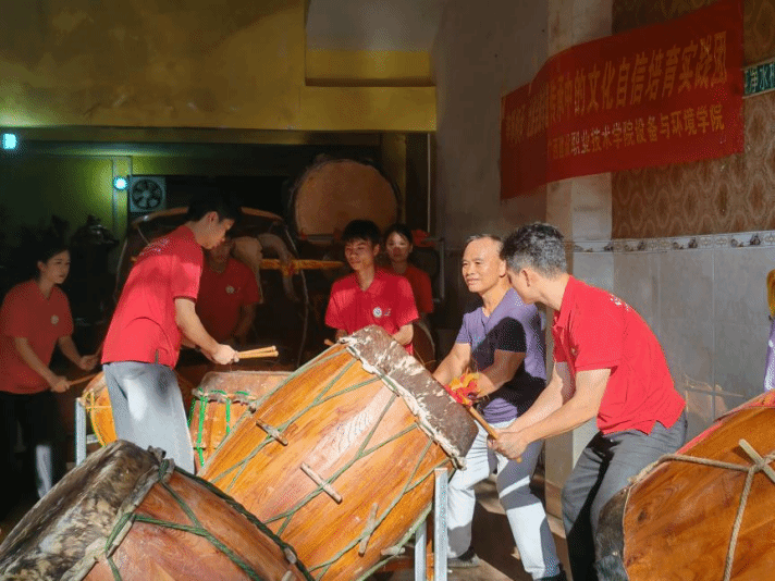 团队专程拜访市级非遗传承人蓝庆阳,系统学习会鼓从宋元驱邪祈福到当代文化符号的演变历程。通过“单槌点”“双槌花”等技法演示,师生们深入理解“刚柔相济、张弛有度”的艺术精髓。在传承基地展示馆,宋代战鼓、清代祭祀鼓等珍贵遗存让队员们触摸到鲜活的历史脉络。