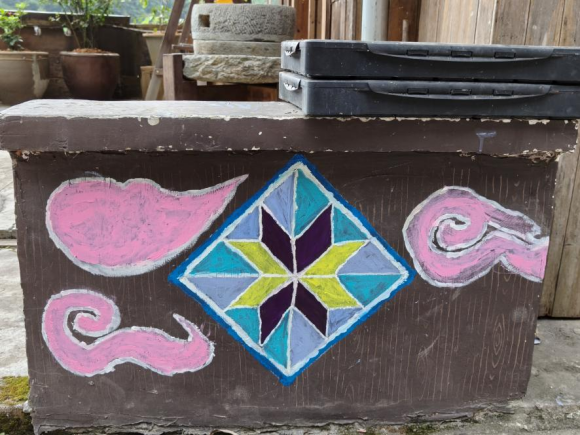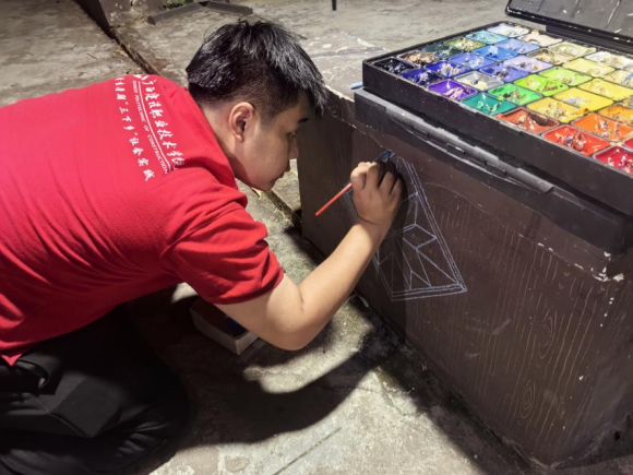 调研学习之余,“育美乡情”实践团深耕惠民实事,践行服务宗旨。在三江县平岩村,实践团对8余处破旧墙面、道路岩石表面及村道路面进行清理,并结合侗族文化特色,完成5幅侗族特色小微图景,为少数民族社区营造出美育特色与艺术氛围。