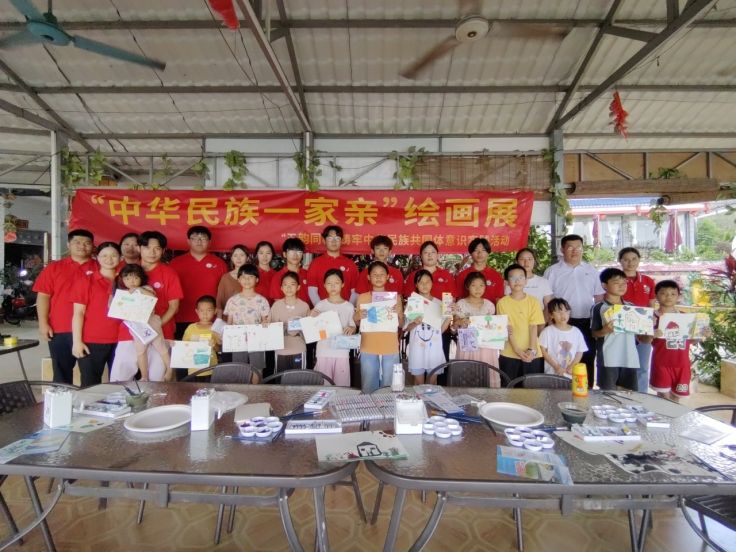支部党员还带领学生教村民用普通话讲党史、给孩子上“古建筑里的美术课”、帮老人用手机记录非遗故事。以“非遗+趣味”为特色,为当地儿童开设系列文化体验课程。在榫卯建筑手工搭建活动中,孩子们通过组装构件感受传统建筑的精妙;非遗扎染课堂上,蓝白相间的图案展现了传统工艺的魅力;铜鼓模型制作环节,孩子们精心绘制壮锦纹理,体验民族文化精髓;“我心中的三江坡”主题绘画课则让孩子们用画笔表达对家乡的热爱。