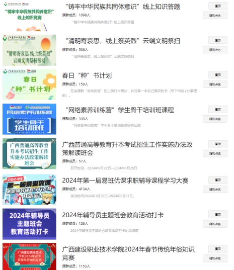 为持续提升平台活力与用户黏性,易班积极实施“易班繁荣计划”,依托平台现有组件,系统构建了网络课程、在线考试、知识竞赛、话题讨论与网络调研五大核心板块,并重点打造覆盖新生入学教育、日常思政、职业素养与安全教育等主题的系列优课资源。截至目前,平台已累计发布课群185个,参与人次近67万,内容覆盖与育人影响力持续扩大。同时常态化开展微电影、短视频、摄影、图文等网络文化作品征集活动,择优推荐优秀作品参加全区乃至全国竞赛,逐步形成“以赛促建、以文化人”的良性创作生态,为校园文化繁荣注入了澎湃动力。