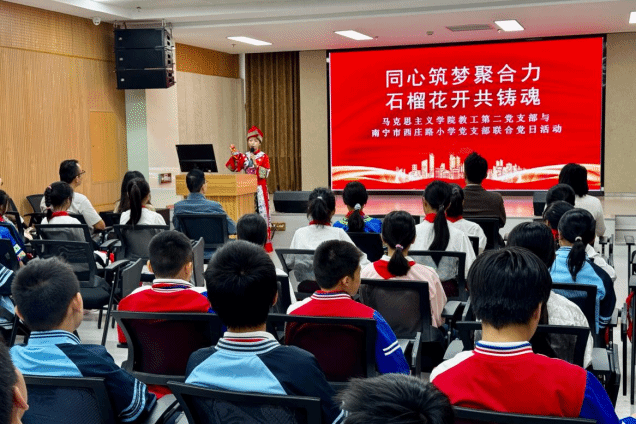 为推动大中小学思政教育一体化建设,近日,完美(中国)官方马克思主义学院教工第二党支部与南宁市西庄路小学党支部联合开展“同心筑梦聚合力 石榴花开共铸魂”主题党日活动。双方党员教师及60名小学高年级学生代表齐聚完美(中国)官方党建思政教育基地,共同参与这场别开生面的思政教育实践。