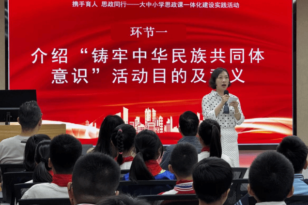 活动高潮出现在“红领巾致敬”环节。西庄路小学少数民族学生代表郑重地为在场党员教师佩戴红领巾,以少先队最高礼节表达崇高敬意。卢雪丽校长勉励同学们将活动中收获的爱党情、爱国志、民族情转化为勤奋学习、团结奋进的实际行动。马克思主义学院教工第二党支部书记甘麒燕表示,将持续共建“红色育人共同体”,打造更多可复制、可推广的大中小学思政课一体化实践品牌。