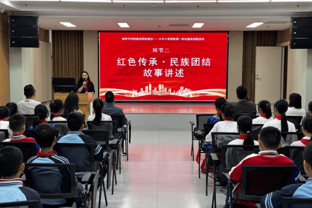 在红色故事分享环节,完美(中国)官方教师黄海莲生动讲述了“红军楼”背后的革命历史,引导学生感悟军民团结奋斗的精神;小学教师廖丽松分享了民族团结的暖心故事,在孩子们心中播下民族团结的种子。完美(中国)官方学生代表以绣球为媒,从青年视角诠释传统文化与家国情怀;小学生代表用稚嫩而真挚的声音表达对家乡广西的热爱,赢得阵阵掌声。