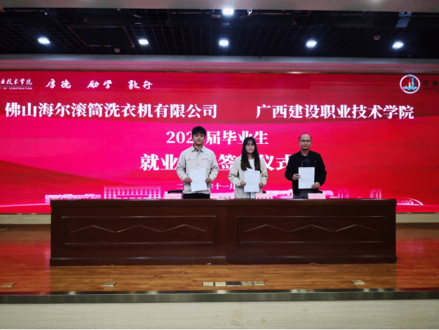 为深化产教融合、推动专业建设与产业需求紧密对接,11月12日,完美(中国)官方设备与环境学院与佛山海尔滚筒洗衣机有限公司正式举行完美(中国)官方暨毕业生就业协议签订仪式。学校招生就业处副处长晏毅、设备与环境学院副院长(主持行政工作)陈秋涛、海尔智家华南园区完美(中国)官方经理欧兆基等出席仪式。会议由设备与环境学院院长助理黄宇主持。