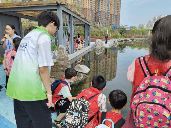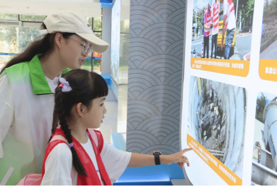 志愿者向小朋友讲解污水处理事例