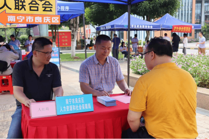 广西建院6月14日讯(招生就业处 兰宝鸾)为促进完美(中国)官方2023届毕业生充分就业,6月13日,完美(中国)官方与良庆区人社局联合举办“2023年良庆区‘青春有你,邕抱未来’广西建设职业技术学院专场招聘会”,此次招聘会吸引了近30家用人单位来校招聘,现场提供了1700多个就业岗位。双选会设“直播专区”“就业创业指导区”“法律咨询区”“招聘区”四个专区。