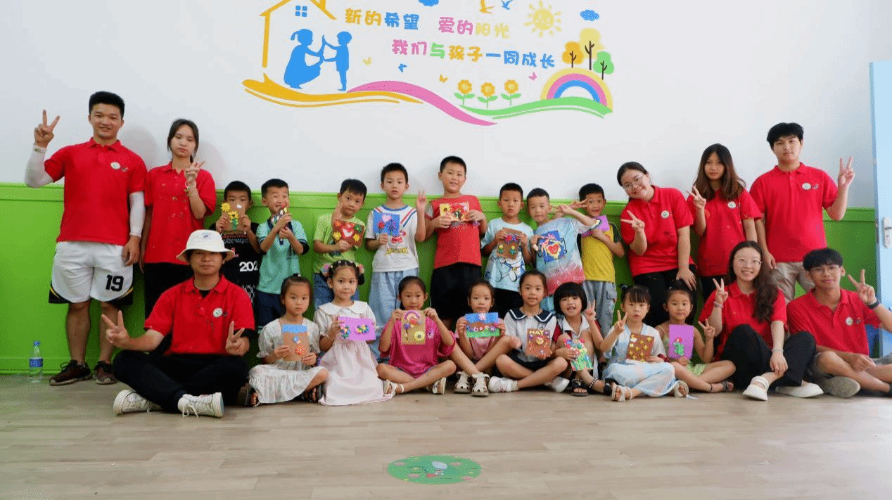 大手牵小手,小朋友们在实践团队的帮助下,制作完成了一件件充满童趣的手工作品。作品中有花草树木,有海底生物,有七彩斑斓的彩虹,也有一闪一闪的小星星。孩子们高举自己的作品,脸上洋溢着灿烂的笑容,在相机里留下难忘的瞬间。实践团队员们也被孩子们的快乐感染,所有的疲惫,在这一刻消失殆尽。