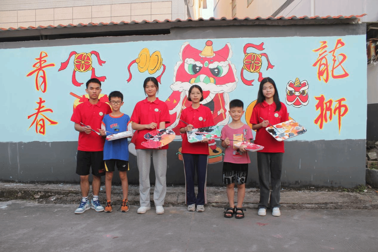 以青春之我,绘龙狮墙绘。实践团成员主动发挥专业优势,在凤村开展主题墙绘制作,充分发挥丰富的想象力和创造力,结合实际用画笔和颜料,创作出以“青春龙狮”为主题的墙绘,为进一步改善农村人居环境,扎实推进宜居和美乡村建设贡献青春力量。