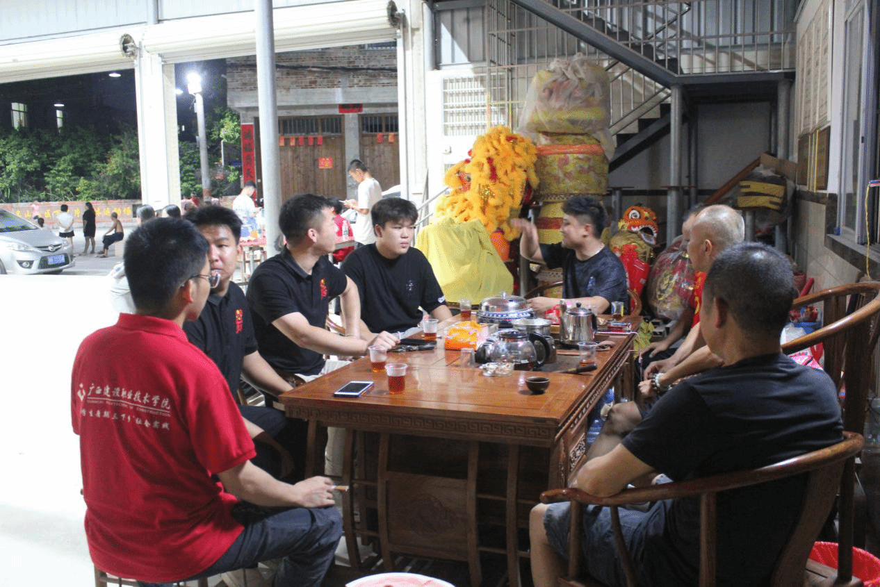 团队成员与广西鹏荣龙狮队、汝南大成武馆负责人交流