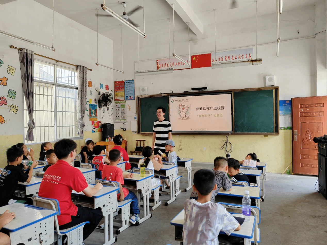 7月11日—13日,“青春润语”推普助力乡村振兴实践团结合立新村少年儿童普通话学习实际情况,以推广普通话为核心,以语言能力培养为重点,开设字词训练、朗诵、情景剧等不同主题的特色推普课堂,寓教于乐,寓学于趣,让普通话真正做到“进乡村、入家庭”。活动中,实践团还选送《少年中国说》《盛世中国》等节目参加当地的文化下乡演出,精彩的表现赢得观众的阵阵掌声。
